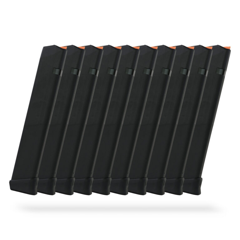The 10+2 Round 9x19mm Glock Magazine With Extension Black – 10 Pack is designed for use with Glock-pattern pistols chambered in 9x19mm. Built to follow standard Glock magazine dimensions, it ensures proper fit and reliable function across compatible models.