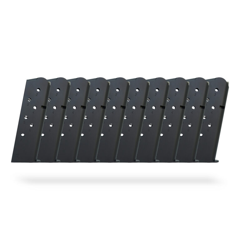 With a 7-round capacity, these magazines follow the original 1911 configuration. This makes them suitable for users who prefer traditional capacity for training, reliability testing, or carry setup. Rear witness holes allow for quick visual confirmation of remaining rounds.