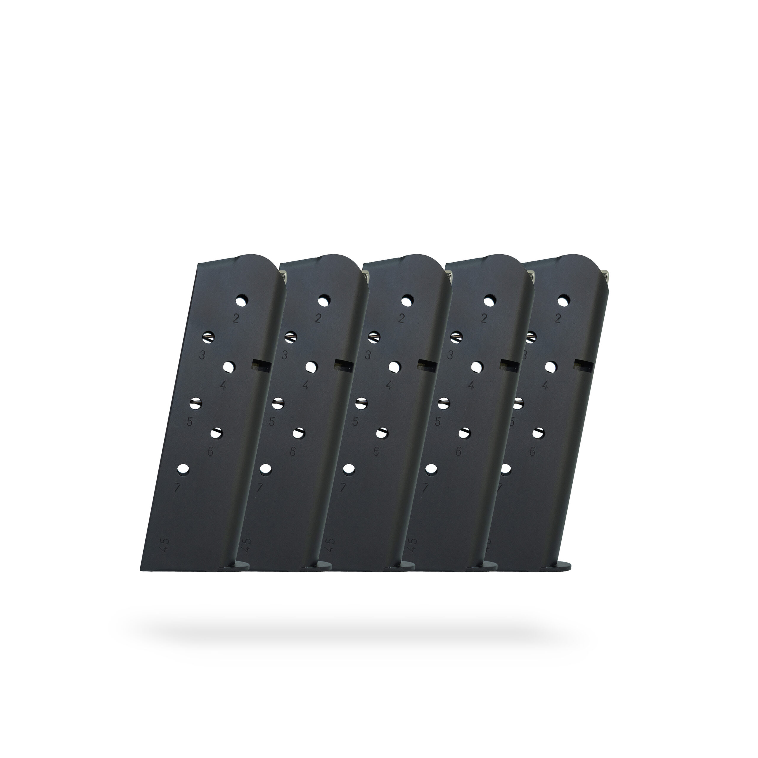 Set of five 7-round .45 ACP 1911 magazines built for reliable use across standard 1911 platforms. Suitable for range training, carry rotation, or maintaining a ready set of spare magazines.