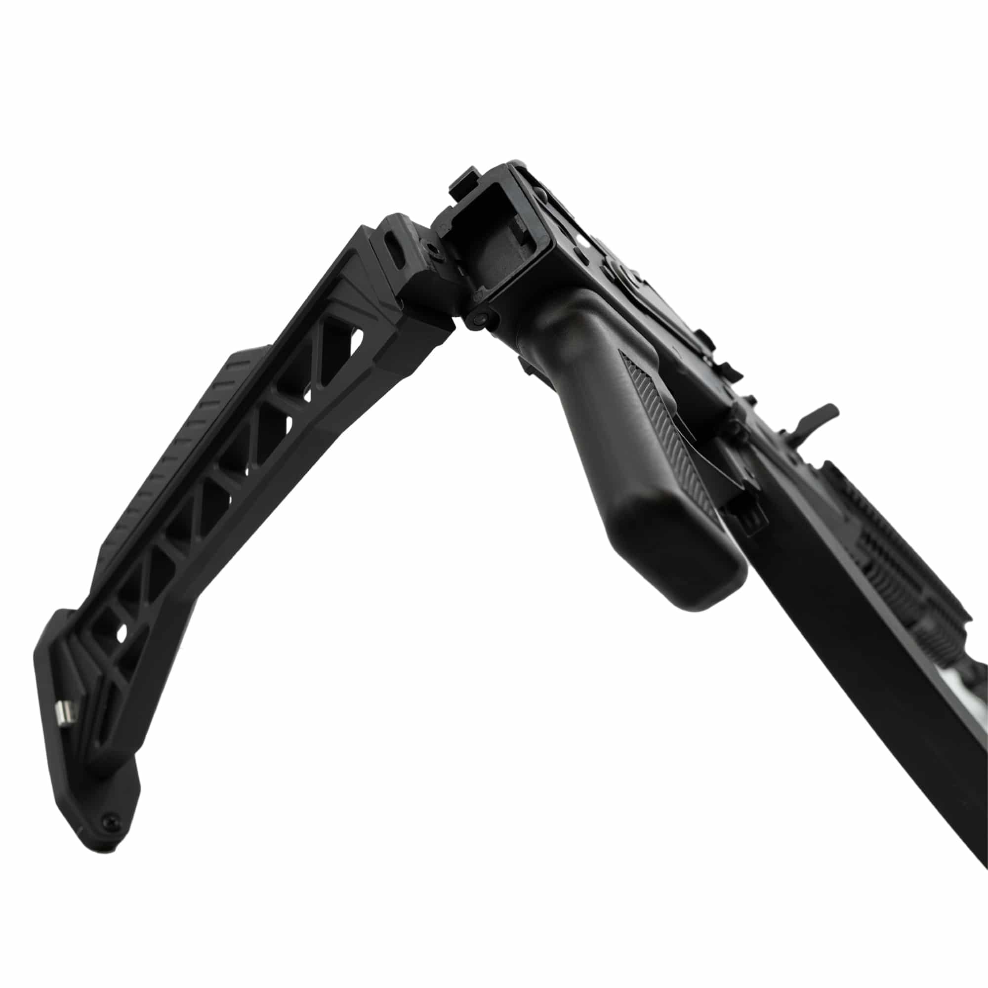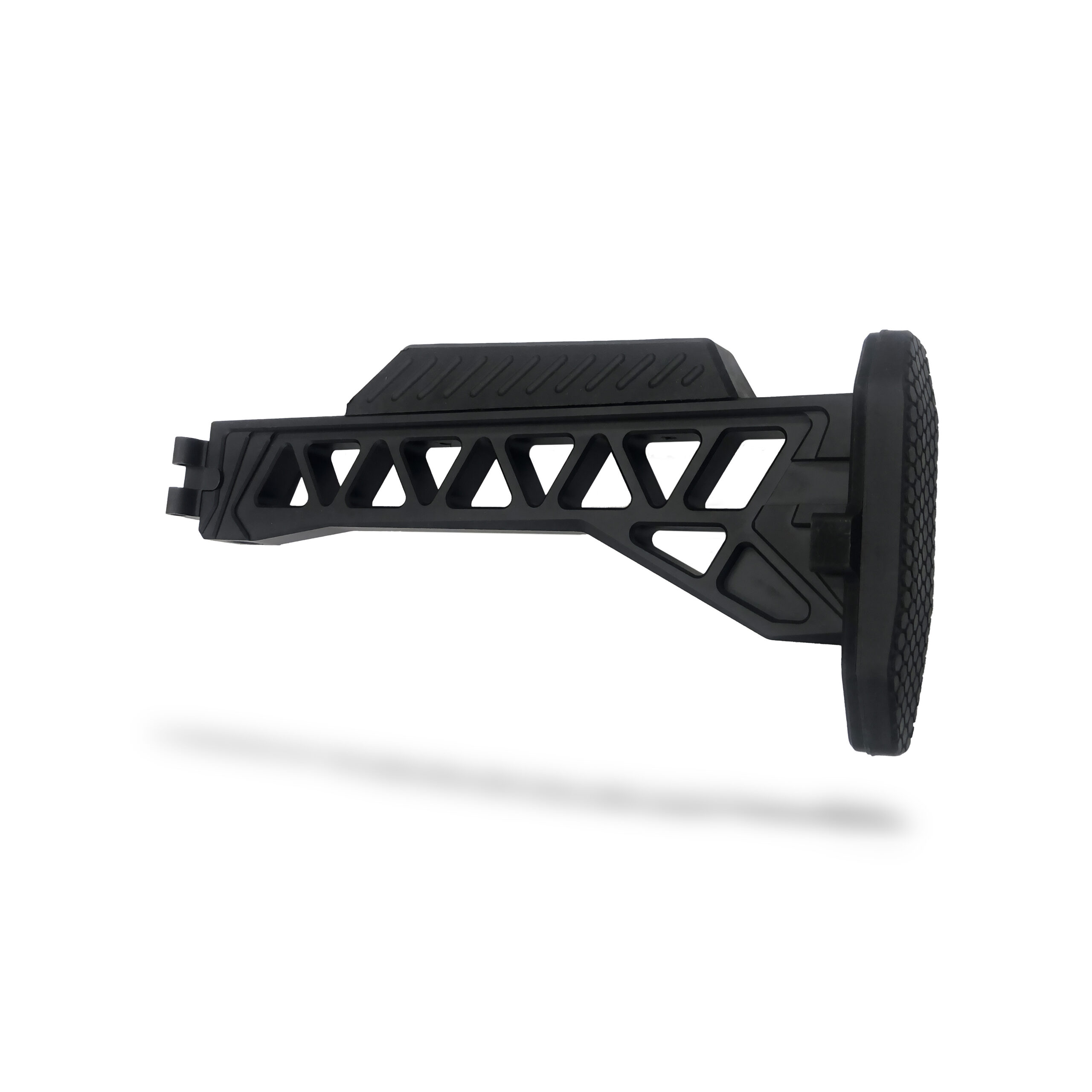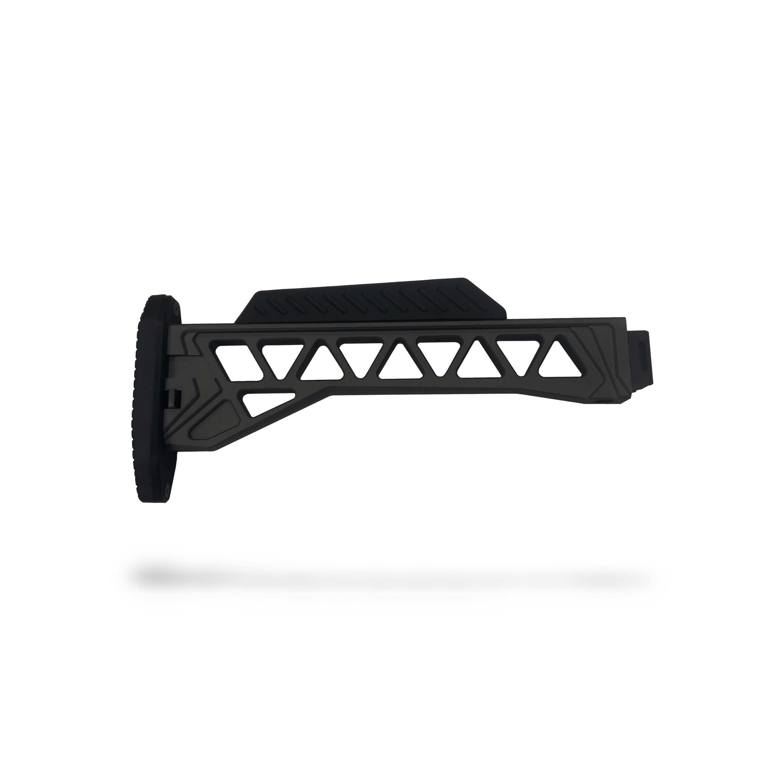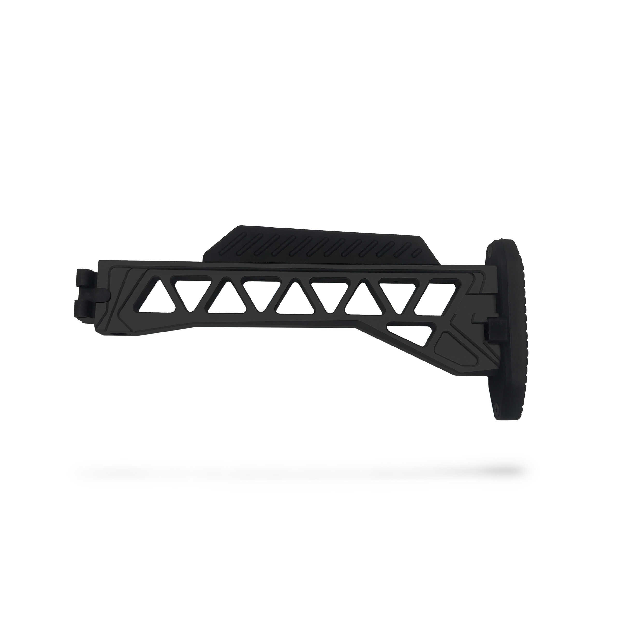 Crafted from 6061 aircraft-grade aluminum with a 4141 steel hinge and locking plate, this stock delivers outstanding strength without adding unnecessary weight. It features a robust side-folding mechanism with a positive locking system, ensuring secure deployment in both folded and extended positions.