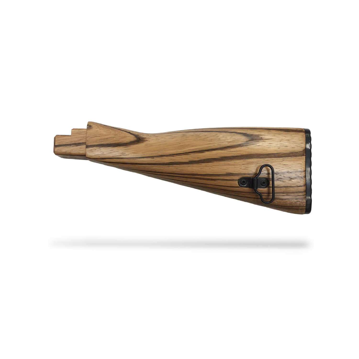 Expertly crafted from exotic Zebrawood, the AKM Fixed Wood Stock pairs bold wood furniture with rugged construction – built for AKM-pattern rifles with fixed-stock rear trunnions.