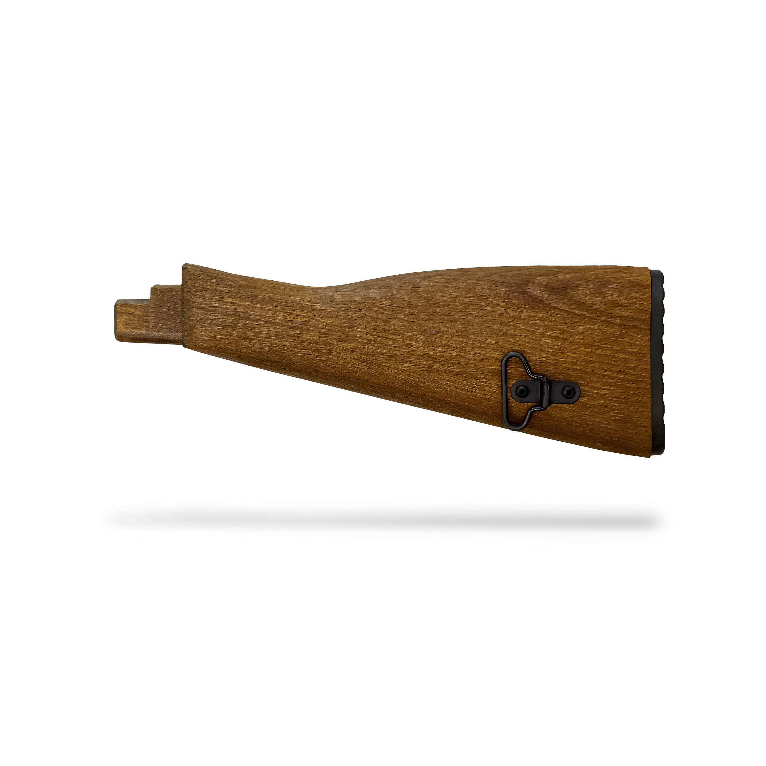 Designed specifically for AKM-pattern rifles with fixed rear trunnions, the stock ensures proper fitment and long-term reliability. It features a reinforced steel buttplate, a left-side steel sling loop, and durable steel mounting hardware, providing strength and stability under regular use.
